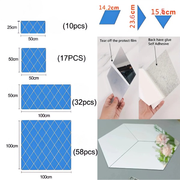 Kasutage 32 kleebist kolmes suuruses, et luua unikaalseid kujundusi. Korraldage need 50 x 100 cm ristkĂŒlikuks vĂ”i kohandage paigutus vastavalt oma stiilile. VĂ”imalused on lĂ”putud, kas soovite luua statement-seinad, rĂ”hutada mööblit vĂ”i lisada laele ja ustele elegantsi.