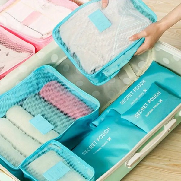 6 x reisikorraldaja kotti (3 tõmblukuga võrgust kotti + 3 tõmblukuga kotti)