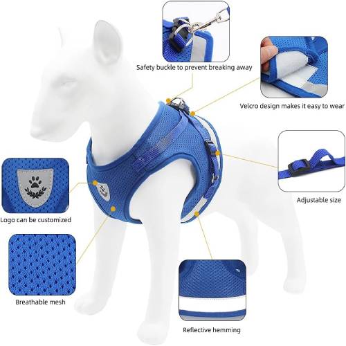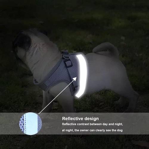 Reguleeritava helkuriga lemmiklooma rihma ja rihma disain on pehme, mugav ja hingav võrkkangas, mis parandab teie lemmiklooma kandmise kogemust.